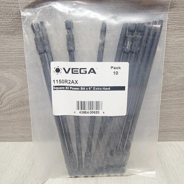 Power 10 Pc VEGA 1150R2AX Square Power Bit #2 x 6" Extra Hard