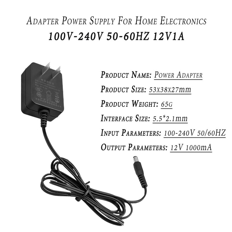 • 【Input】100V-240V 50/60Hz; output: 12V DC, 1A max; Works with device that draws less than 1A, such as 100ma 300ma 450ma 500ma 600ma 650ma 700ma 800ma 900ma 1000ma.