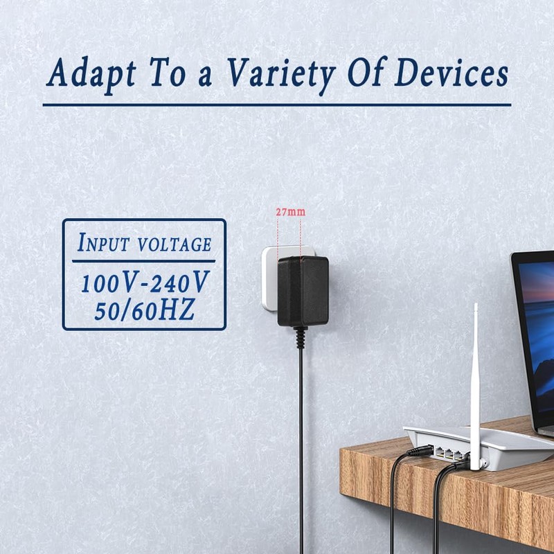 • 【Extra Long Cord】MULIKE ac power adapter comes with an 4.92ft (1.5m) cord, giving you the flexibility to place your devices wherever you need them. Cord length is long enough for intended use.