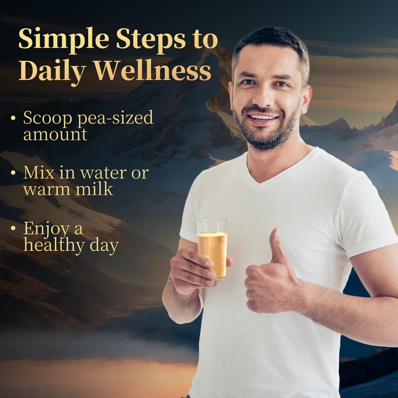 ✅ Easy to Use – Simply dissolve a pea-sized (400mg) amount of Shilajit resin in warm water or your favorite beverage for a convenient daily boost to energy, immunity, and overall wellness.