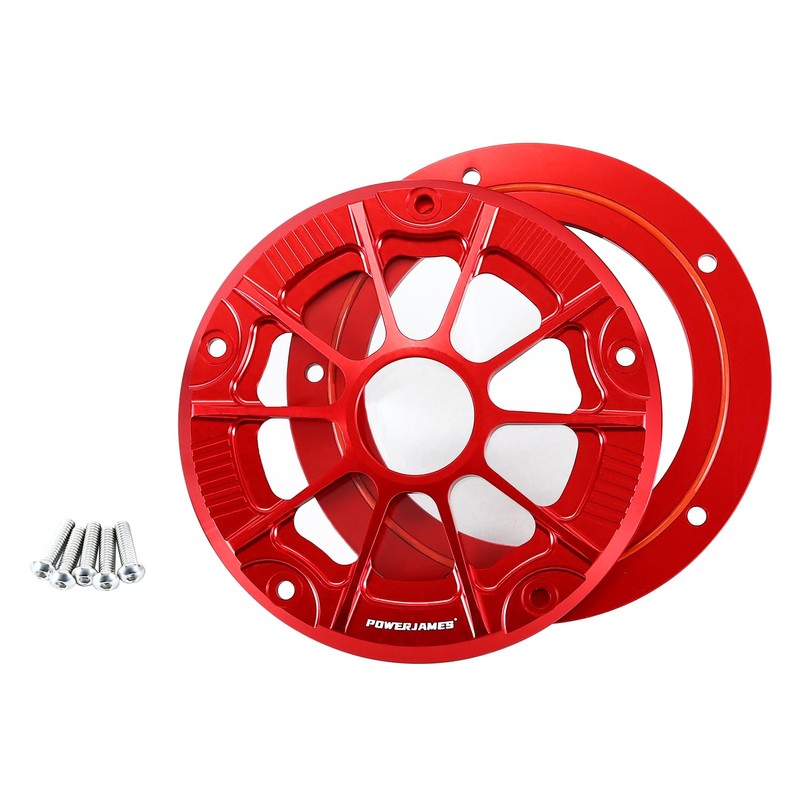 POWER JAMES Motorcycle Primary Clutch Derby Cover, Hollow Out with Acrylic Glass, Compatible with Dyna 99-2017, Softail 1999-2018, Touring 99-2015 (Red)