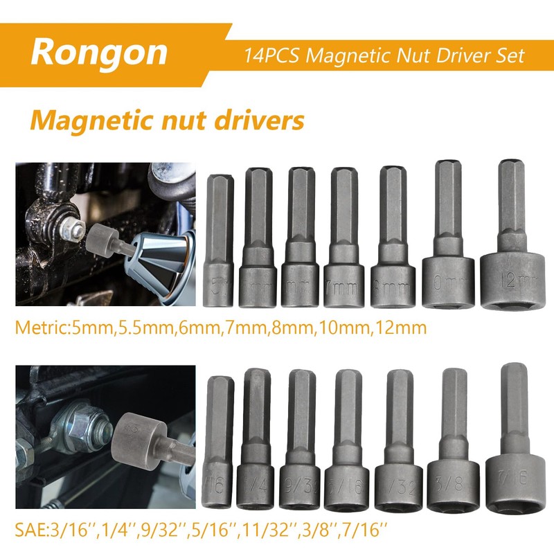 - ✅These nut drivers have ¼” hex shank and it was made by tool steel 40CR. their length are 38mm.