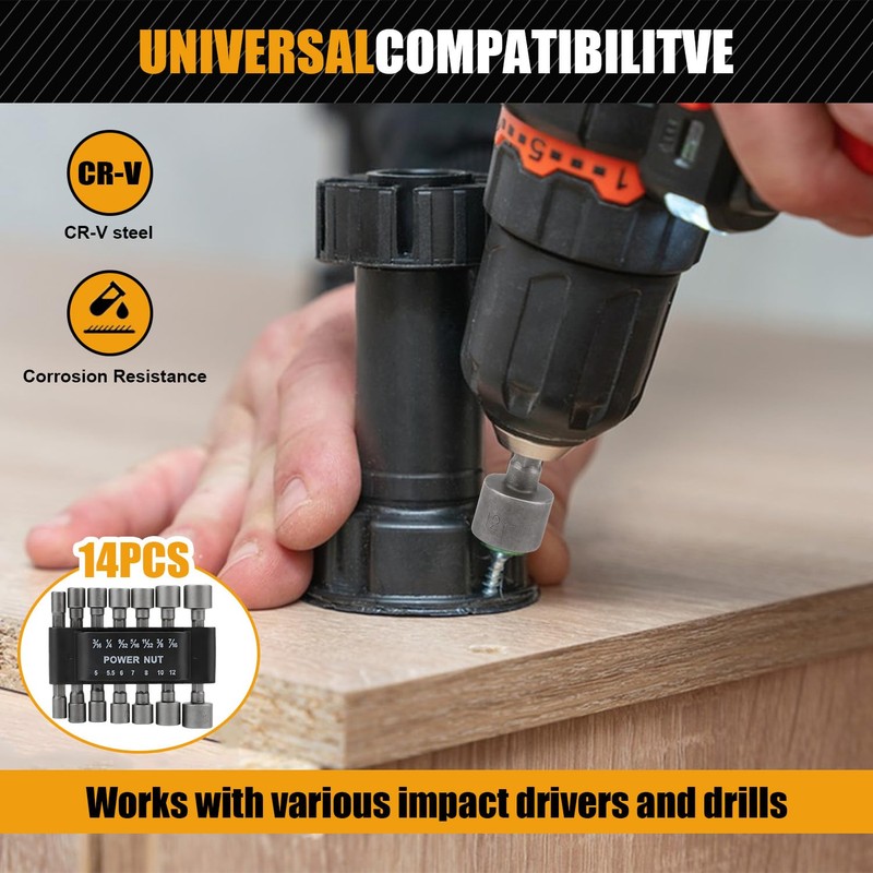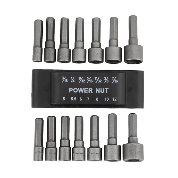Power Nut Driver Drill Bit Set of 14 Pcs Metric Socket Wrench Screw 1/4 Inch Hex Bits Adapter