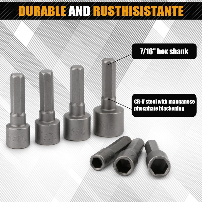 - ✅Power nut sets without magnetic!!! Hex-Shank Length: approx. 2.0 cm, Shank Diameter: 1/4 inch (6.35mm).
