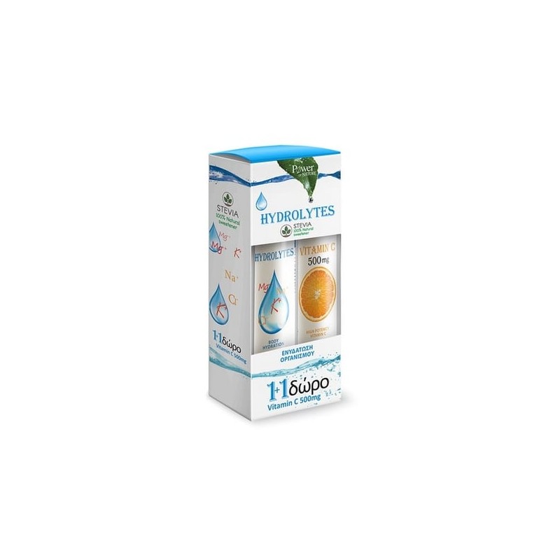 Power of Nature Hydrolytes Stevia 20 eff tabs & Vitamin C 500 mg 20 eff tabs