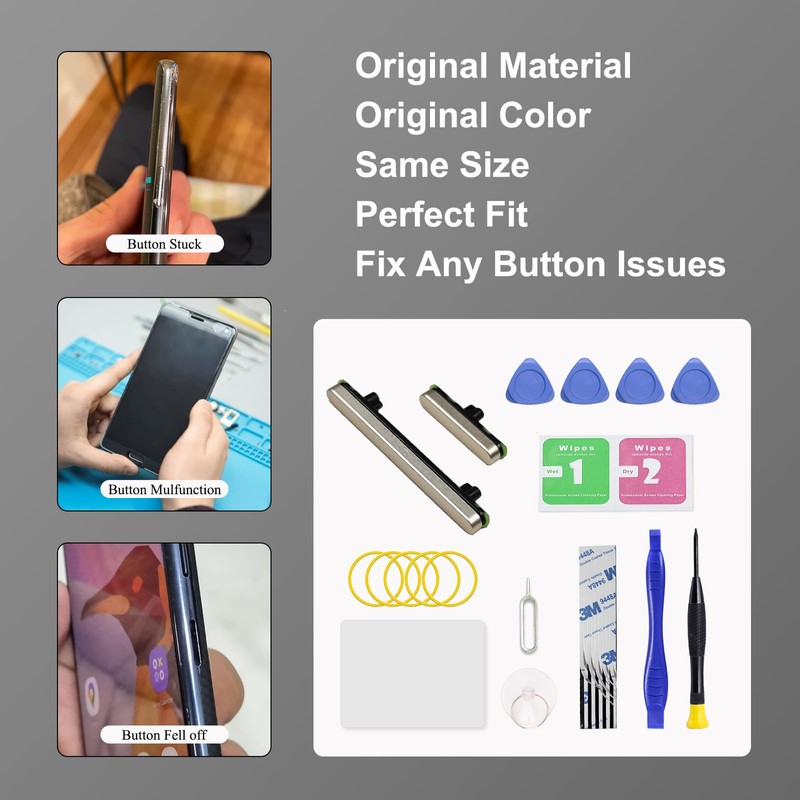 - Including 1 set of side buttons, with power on/off button and the volume button. Same color as original and perfect fit for your phone.