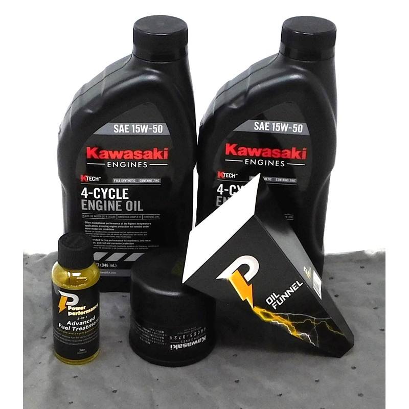 Power Performance 15W-50 Synthetic Oil Change Kit for Kawasaki 49065-0724 and Fuel Treatment