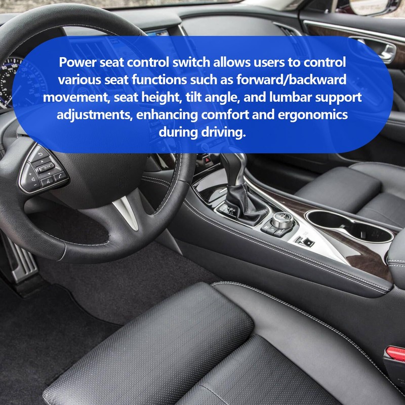 Power seat control switch allows users to control various seat functions such as forward/backward movement, seat height, tilt angle, and lumbar support adjustments, enhancing comfort and ergonomics during driving.