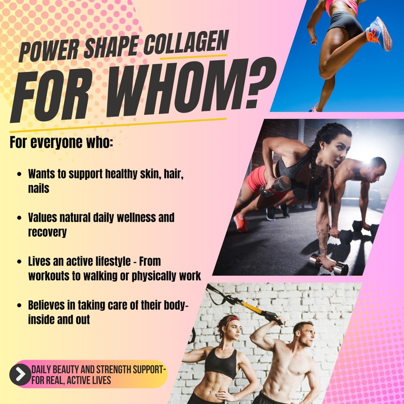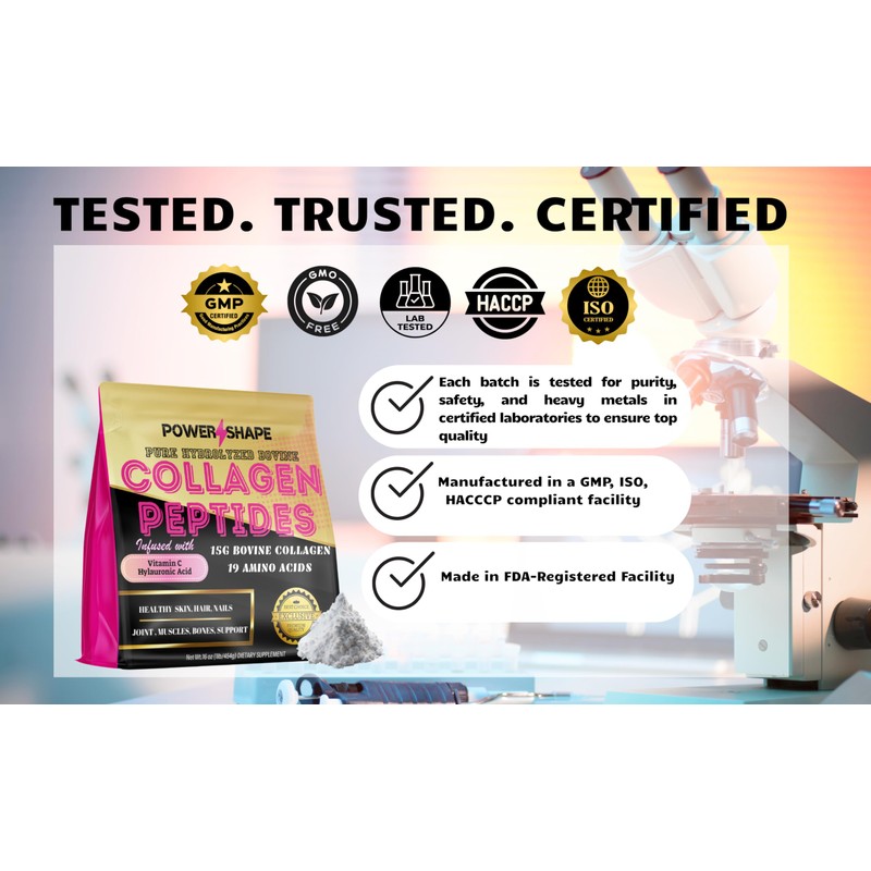 POWER SHAPE Collagen Peptides – New Formula with Vitamin C & Hyaluronic Acid – 100% Hydrolyzed Bovine Collagen – Non-GMO, 15g per Serving – Supports Skin, Hair, Joints – Unflavored, 16oz