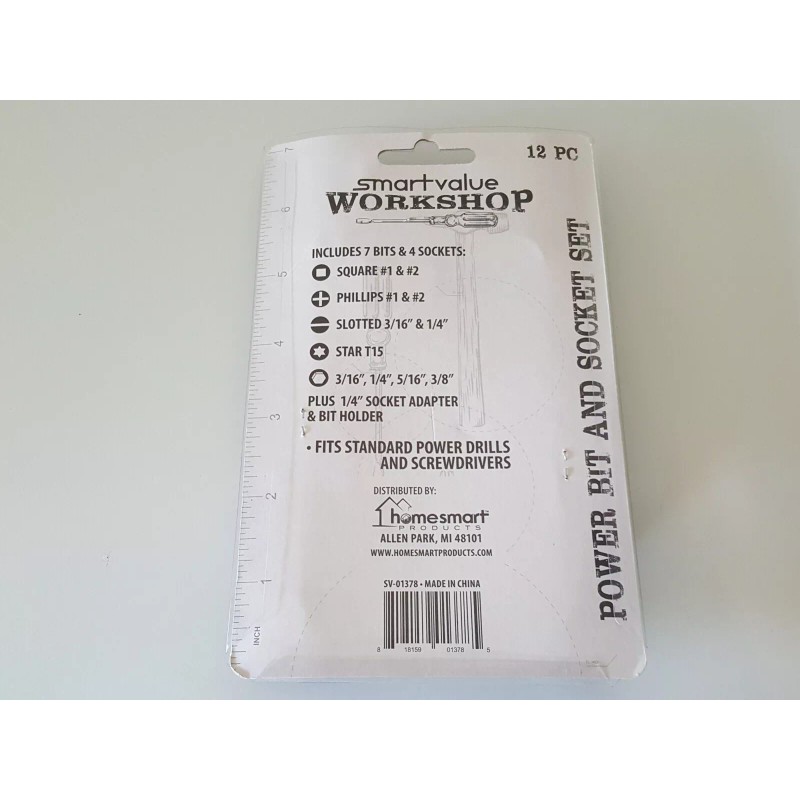 Power SmartValue Workshop 12 Piece Power Bit and Socket Set New (SV01378)