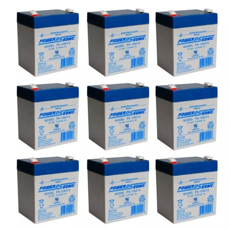 Power-Sonic PS-1250F2 12V 5AH SLA Security Alarm Battery - 9 Pack