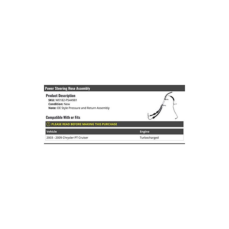 Power Steering Hose Assembly - Compatible with 2003-2009 Chrysler PT Cruiser Turbocharged