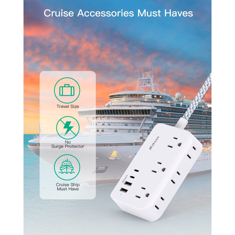 - 【Cruise Accessories Must Haves】- The small cruise power strip with NO surge protection, it's absolutely a must have Home and Cruise Ship accessories as cruise lines require that power strips DO NOT have surge protection. Compact and lightweight, easy to carry and best for travel.