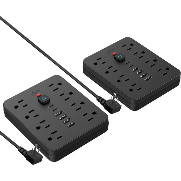 - 【14 in 1 Power for All 】Surge protector power strip features 8 AC outlets with 4 USB and 2 USB C ports .The outlets are arranged to ensure optimal use of each plug, seamlessly accommodating various devices