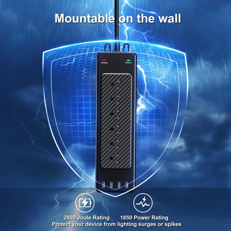 - Advanced Surge Protection: Our power strip features a high 2800Joule energy rating, guarding your valuable devices against voltage spikes and lightning strikes for reliable protection.