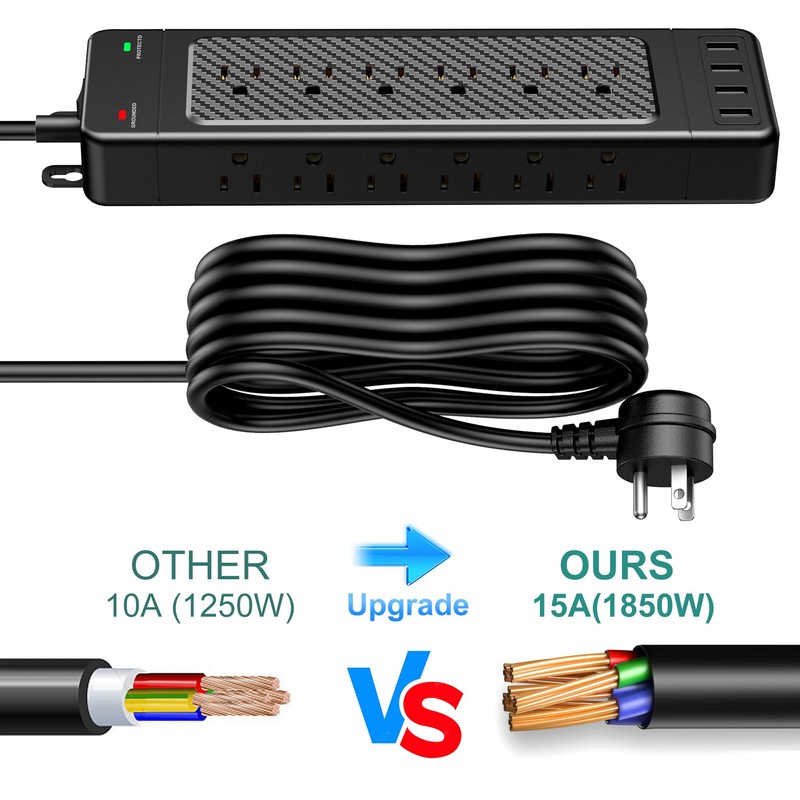 - Robust and Reliable: Designed for heavy-duty use, the power strip boasts a 3600W/15A power rating, ensuring compatibility with high-power devices. The 10-foot long extension cord provides ample reach for any application.