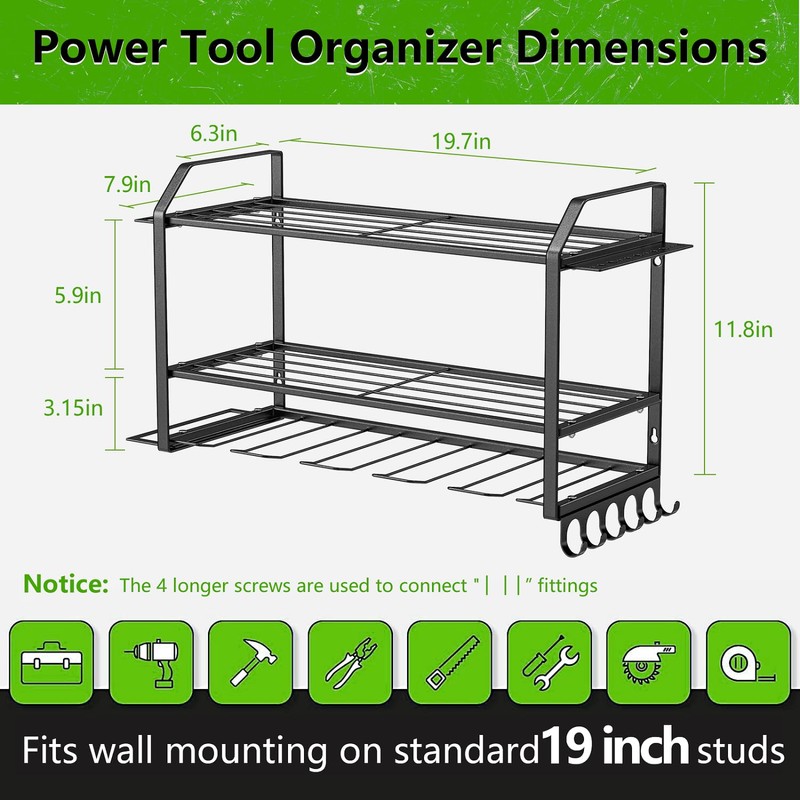 • Fast Assembly: The installation process of the tool storage is very easy, you just need to connect the gauge steel wire and plating with screws and hang it on the wall. We offer professional manuals and accessories. You only need a few minutes to assemble the perfect power tool holder rack for the workroom.
