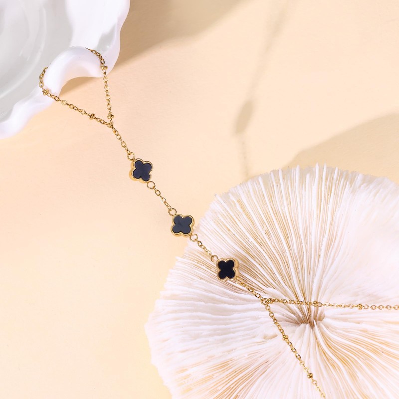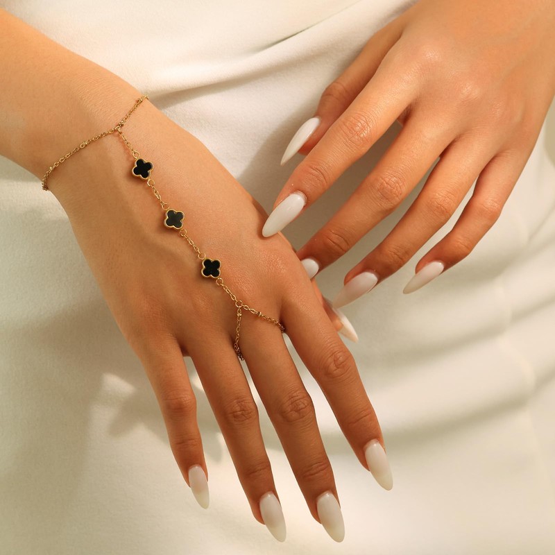 POWER WING Gold Hand Chain With Four Leaf Clover Bracelet Fashion Black Clover Finger Bracelets Ring Hand Chain Adjustable Bracelet Ring