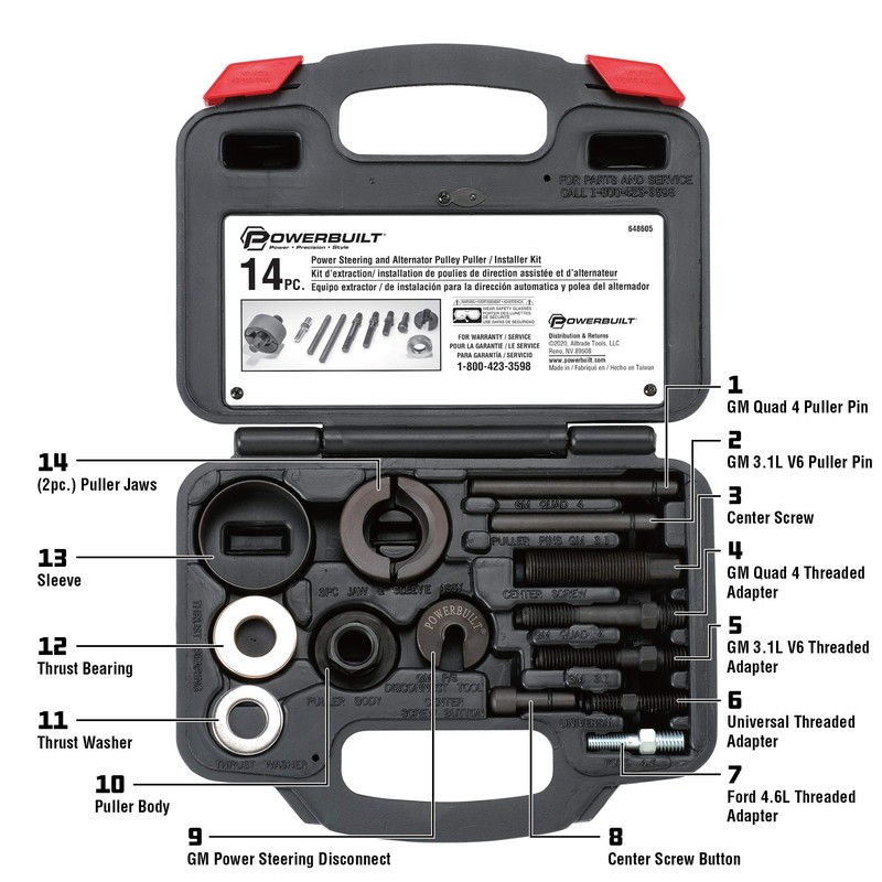 Powerbuilt Power Steering and Alternator Pulley Remove and Install Tool Set, Replace Vehicle Steering Pump, Car Repair Tools, Storage Case - 648605
