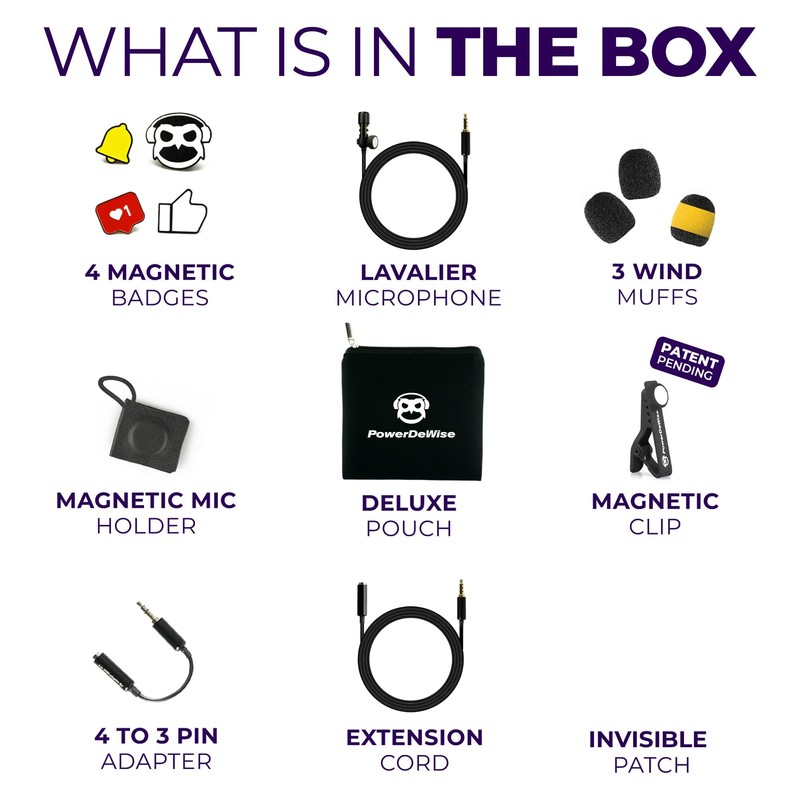 PowerDeWise CharisMic - Lavalier Clip On Microphone with Magnetic Mount and B...