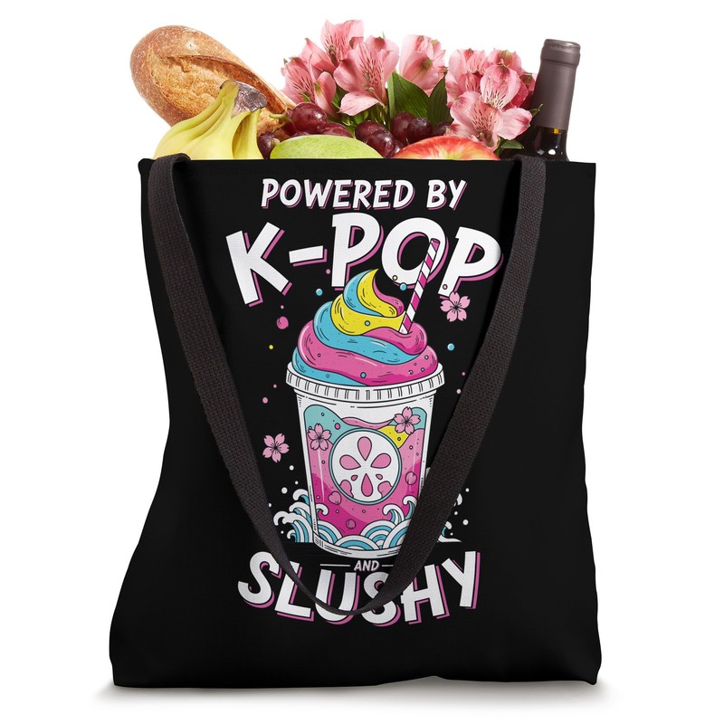 - Cherry blossoms slushie vibrant graphic declaring "Powered By K-Pop And Slushy," with a fun, modern vibe. Perfect for devoted K-Pop stans, anime lovers, snack enthusiasts, and anyone who enjoys a sweet treat while jamming to their favorite Korean artists.