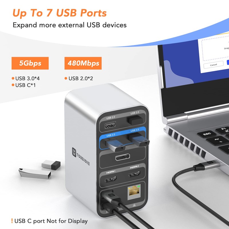 • 100% Plug-and-Play: This TOBENONE docking station with 2 hdmi ports is plug-and-play, no drivers/software is required. The setup is pretty quick and simple. Just one USB-C cable to your laptop's full-featured USB C port and everything is ready to go