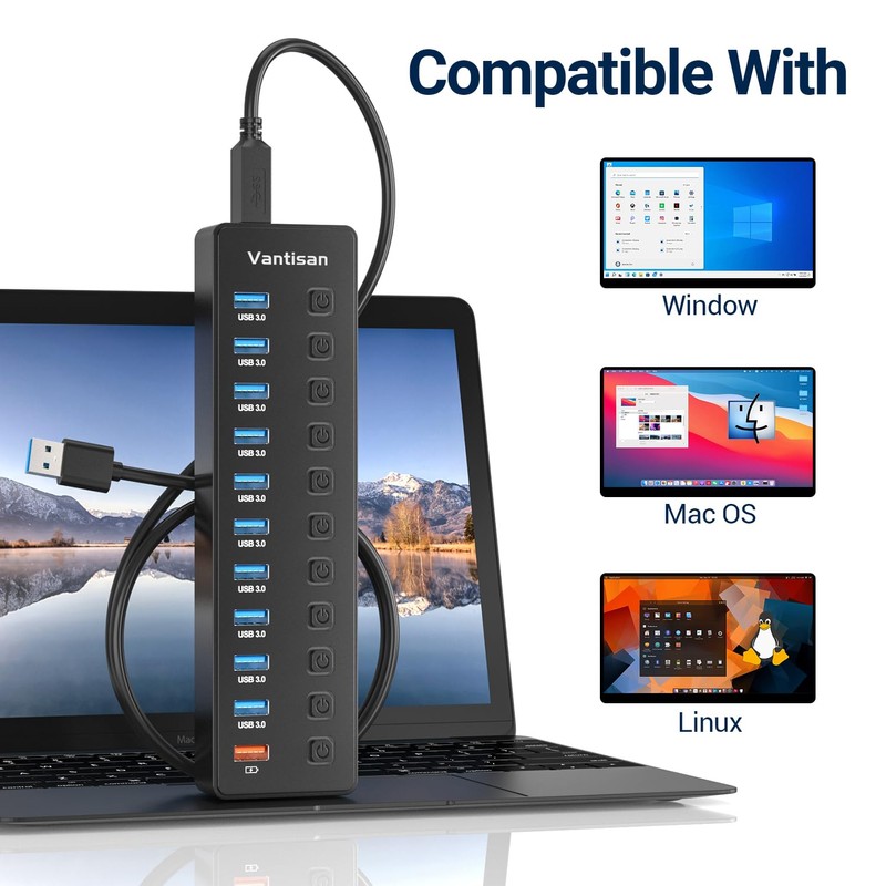- 【11-Port USB 3.0 Hub】Instantly turn one USB hub into 10 USB 3.0 ports and 1 fast charging port, supporting for USB flash drive, keyboard&mouse, printer, hard drive and other USB peripherals