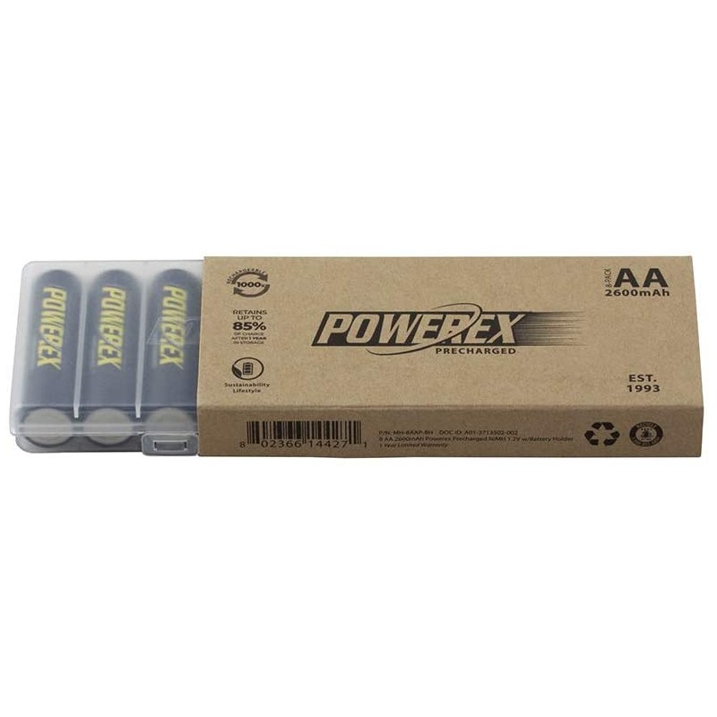 The Powerex recharged MH-8AAP-BH Rechargeable AA NiMH batteries (1.2V,