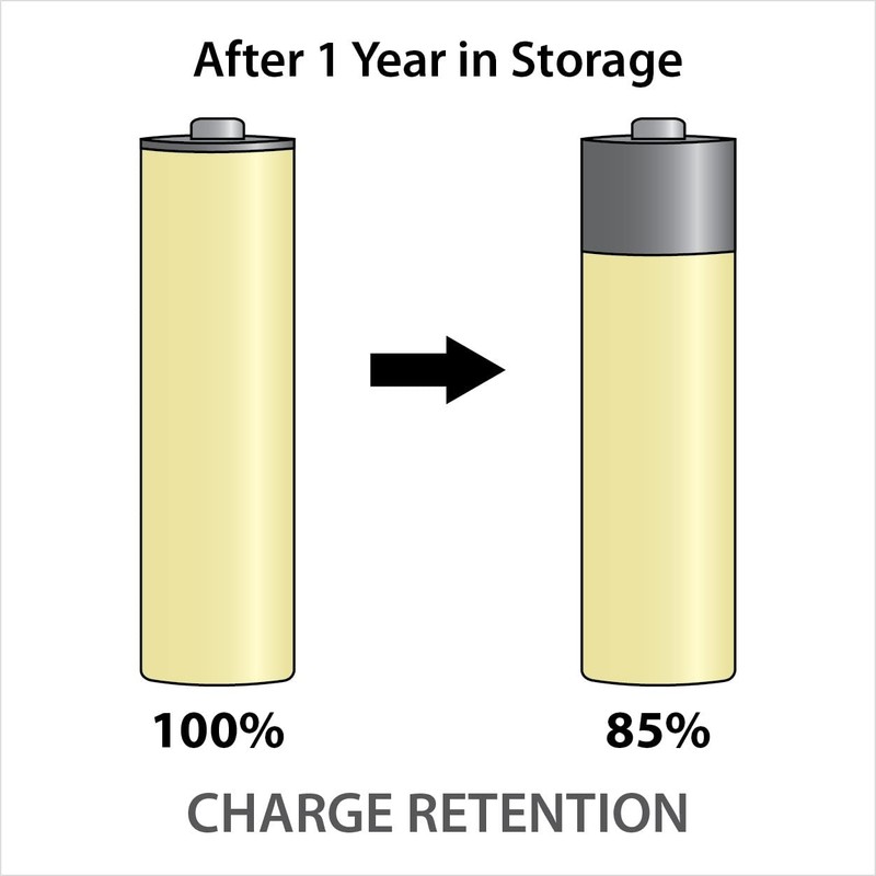 - Retains up to 85% of charge after one year of storage