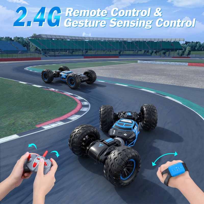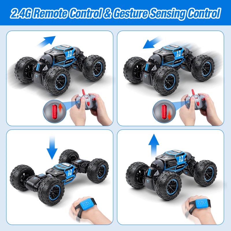Powerextra 4WD 2.4GHz Double-Sided Rotating RC Stunt Car Remote Control Off-Road Toy Child