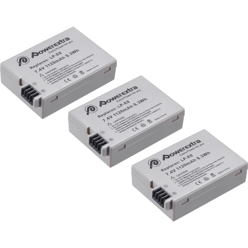 Powerextra LP-E8 Battery For Canon EOS Rebel T3i T4i T5i 550D 600D 700D DSLR - NO, 3 x Battery
