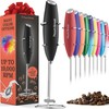 Powerful Handheld Milk Frother, Mini Milk Frother Wand, Battery Operated Stainless Steel Drink Mixer - Frother Stand for Milk Coffee, Lattes, Cappuccino, Frappe, Matcha, Hot Chocolate. Gift