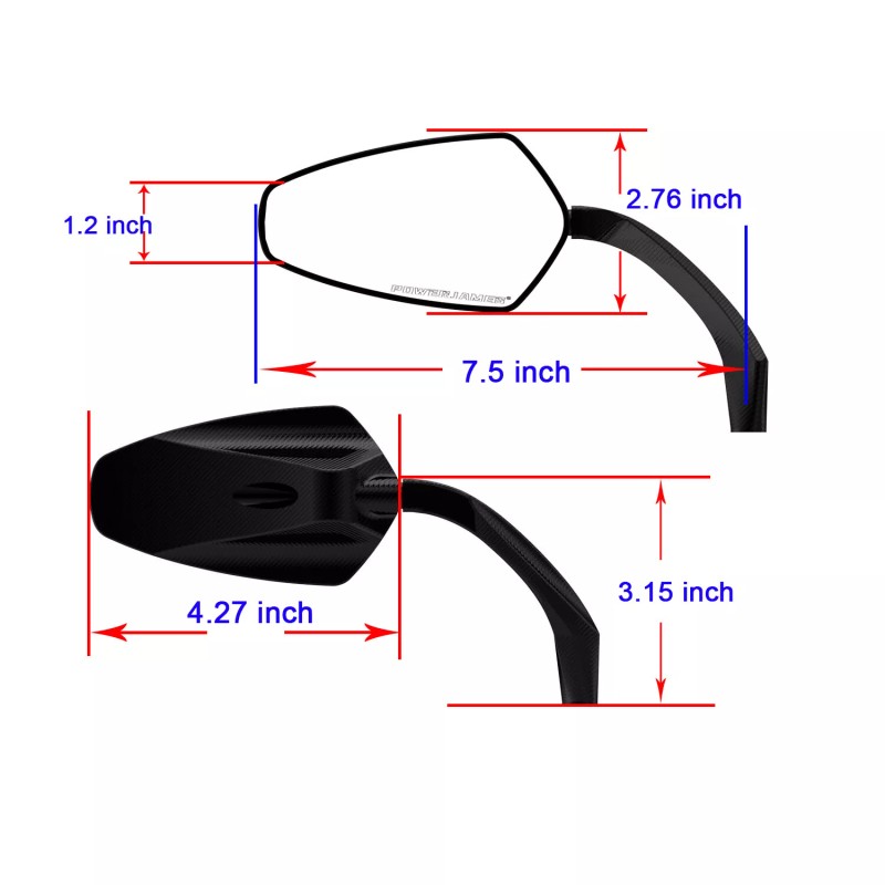 • Extend approximately 7.5 inches from handlebars and with 4.3 inch diameter viewing surface.