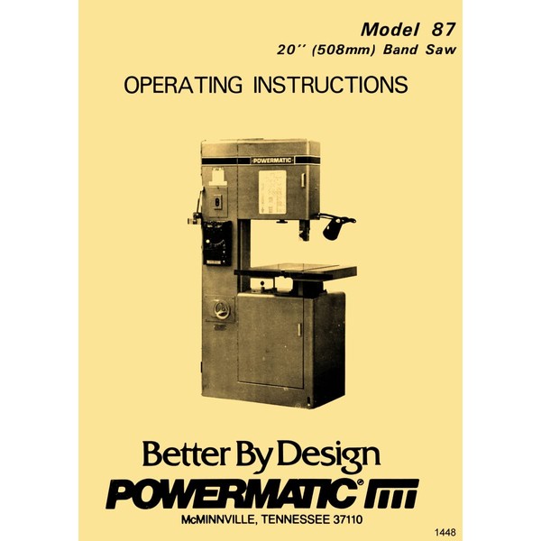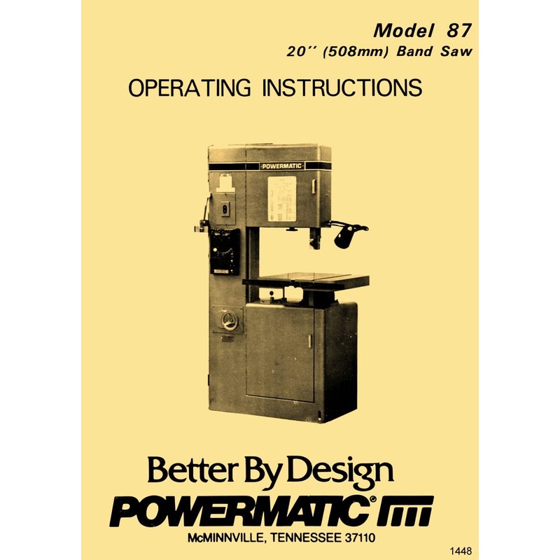 POWERMATIC 87 20" Band Saw Operating Instructions Manual