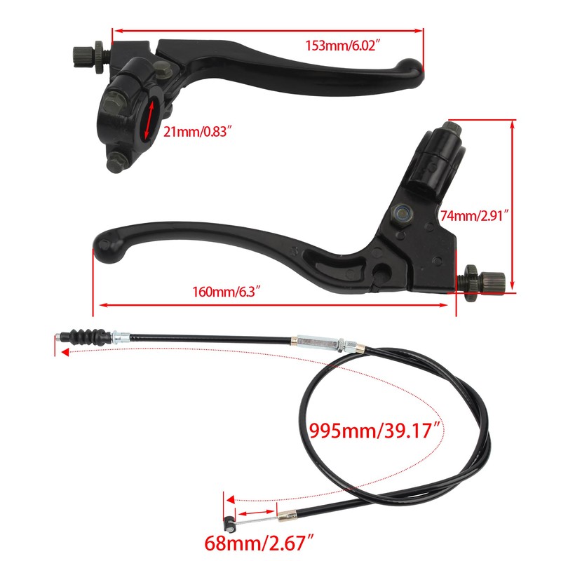 • 【Size】Clutch Lever mounting hole spacing: 22mm, 7/8"; Clutch Cable length: 1000mm/39.4"; Clutch Cable stroke length: 68mm/2.7"(Please refer to the picture for specific size)