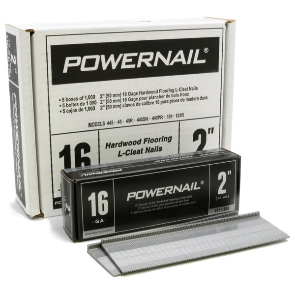 Powercleats�� nails are designed for use in Powernailer�� floor nailers and are superior quality nails. At the heart of any nailing systems is the nail. And, while many nails may look similar, there are differences in quality that can mean the difference between a successful installation or one plagued with problems. Powercleats nails are designed for use with Powernailer nailers, are superior-quality nails and are FHA and VA approved. They meet the requirements of the MFMA (Maple Flooring Manufacturers Association), NOFMA (National Oak Flooring Manufacturers Association) and NWFA (National Wood Flooring Association). Powercleats nails are made in the USA from USA produced high- quality steel so they do not bend while being driven into hard flooring materials. They are made with a well-formed set of barbs along each nail, providing the ultimate holding power. The design aids in driving them into hard flooring materials, which helps to eliminate split tongues in floorboards. When used in conjunction with Powernail's Powernailer�� line of nailers, Powercleats�� nails ensure trouble-free operation and optimum construction results. Powercleats nails are available in all sizes to fit all flooring applications and come in conveniently sized cartons. This chart will assist you in determining the proper length of Powercleats to use for various thicknesses of flooring when the sub flooring member varies as to species and thickness. Approximate vertical penetration of the Powercleat under the hardwood floor is shown for each application. This is only a guide. Results should be tested in the field before proceeding. 16 Gauge Nails (Models 445 XL, XS, LL, LS, SL, SS)