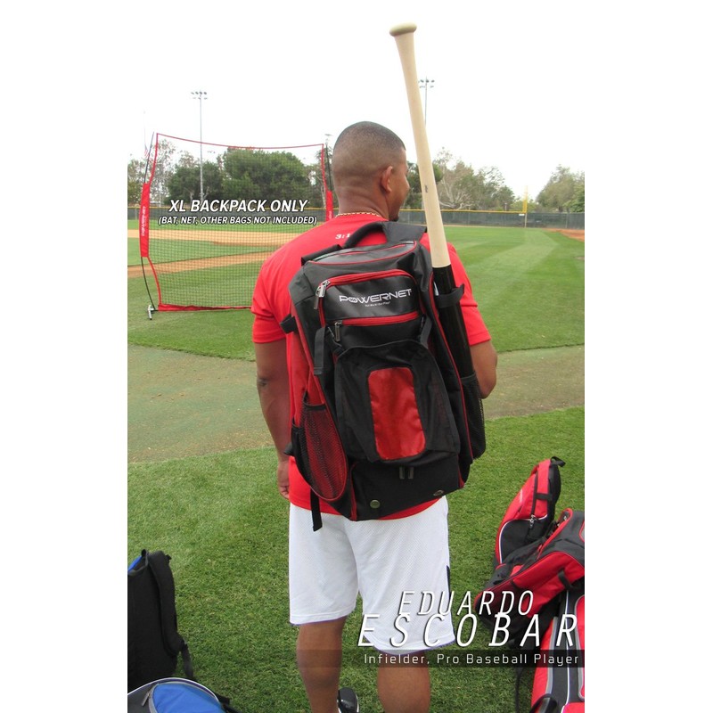 PowerNet Baseball Softball Backpack | RED | Padded Helmet Carrier | Dual Bat Sleeves | Vented Cleat Compartment | Fence Hook | Hook and Loop Batting Glove Area