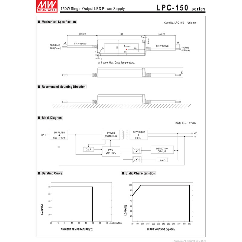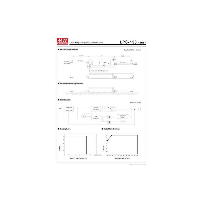 LPC-60/100: 90~264VAC input;LPC-150: 180~305VAC input only