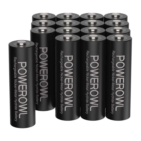 POWEROWL AA Rechargeable Batteries, 2800mAh High Capacity Batteries 1.2V NiMH Low Self Discharge, Pack of 16