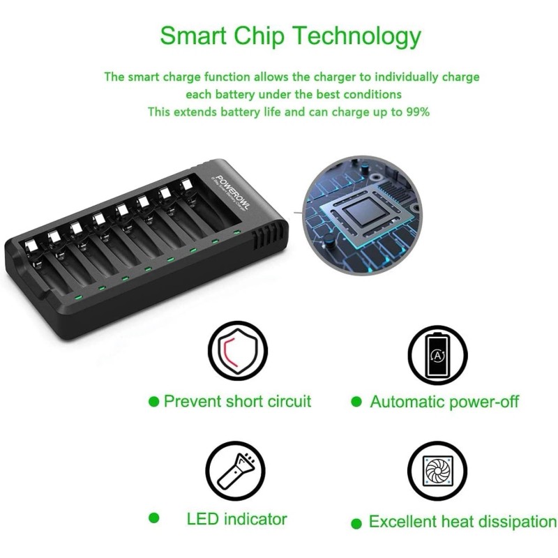 POWEROWL Rechargeable AA Batteries with Charger, POWEROWL 8 Pack of 2800mAh 8 pack