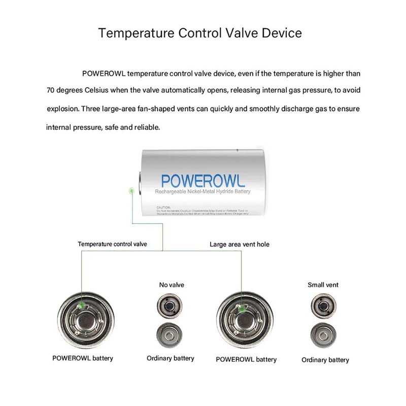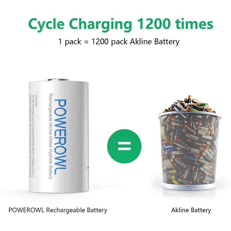 POWEROWL Rechargeable C Batteries Nickle Metal Hydride 5000mah Low Self Disch...