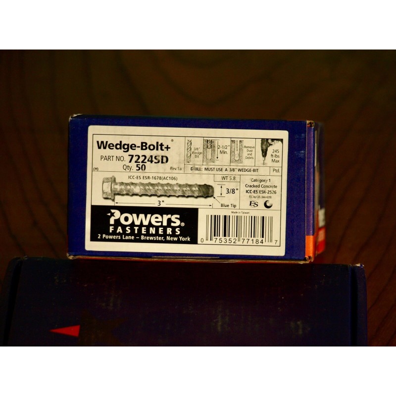 - These Powers Fasteners, 3/8" x 3" Concrete Wedge-Bolt+ are left over from a completed pallet racking move job.