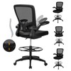 POWERSTONE Drafting Chair, Ergonomic Tall Office Chair Stool Standing Desk Chair with High Back and Flip-up Armrests Adjustable Rolling Workbench Stool with Footrest (1 pcs)