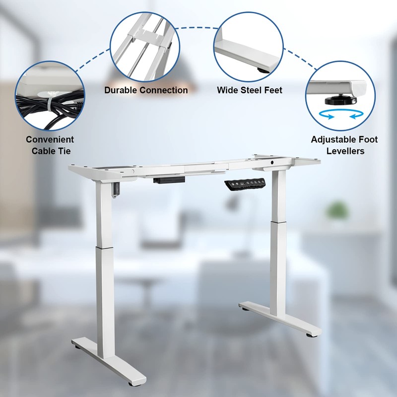POWERSTONE Electric Sit to Stand Adjustable Desk Frame with Button Controller and Cable Management Tie Durable Connection, White