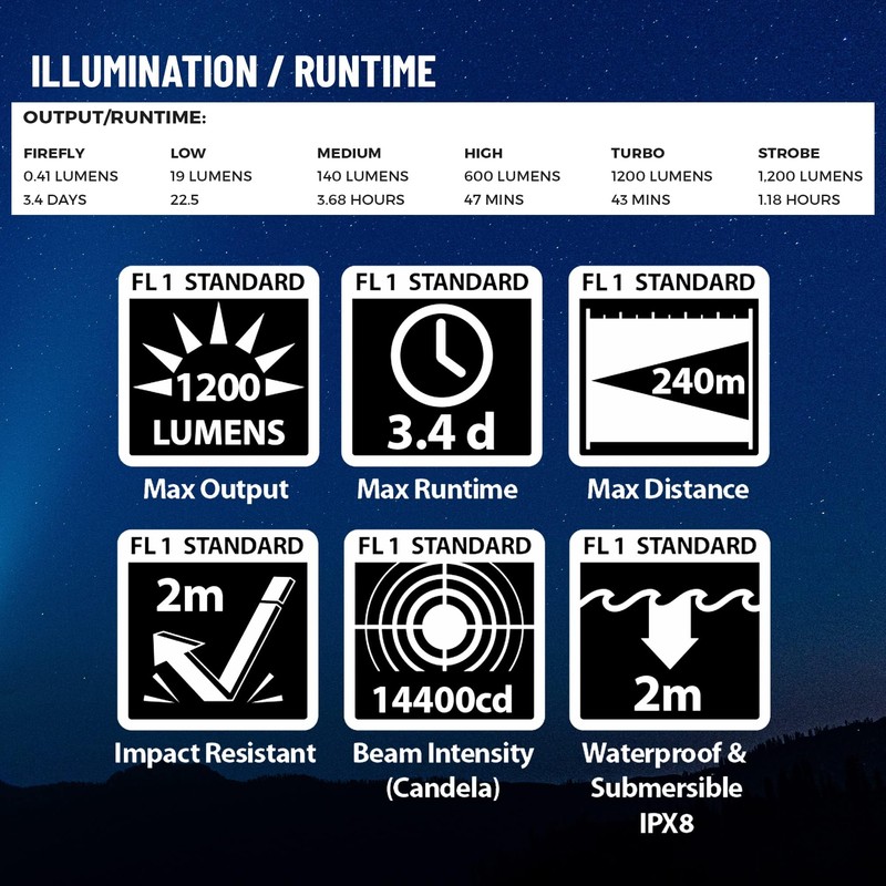 - Durable & Weather-Resistant – IPX8 waterproof and precision O-ring sealed for reliable performance in extreme conditions, with a rugged aircraft-grade aluminum body and an impact-resistant tempered glass lens.