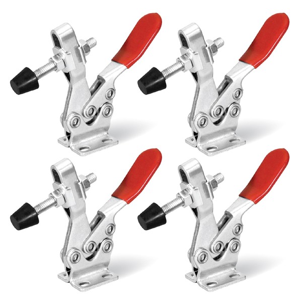 POWERTEC 4PK Toggle Clamp, 500 lbs Holding Capacity, 225D Quick Release Horizontal Clamps w/Antislip Rubber Pressure Tip for Woodworking Jigs and Fixtures,Welding, Drill Press, Crosscut Sled(20325-P2)