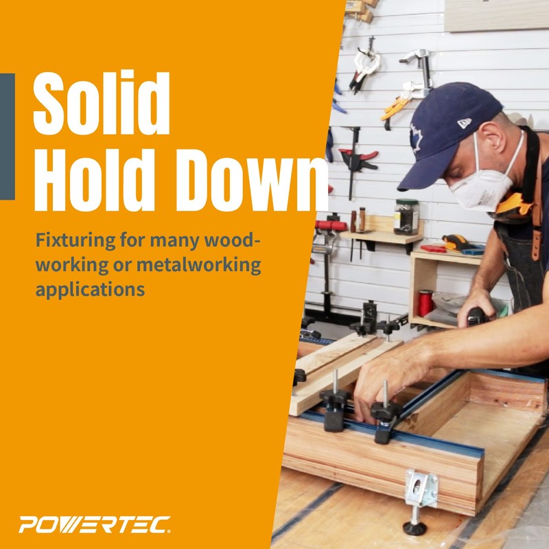 POWERTEC 71168 T-Track Hold Down Clamps, 5-1/2” L x 1-1/8” Width – 2 Pack, Bl...