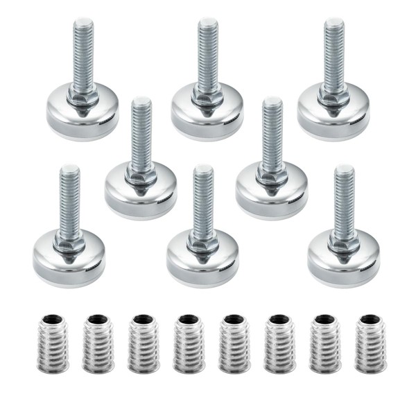 - INCLUDES: (8) Furniture Leg Levelers with bolt body, Dimensions: 3/8”-16 by 2; pad dia 1-3/8”; tapered threaded insert is a nominal 1” high