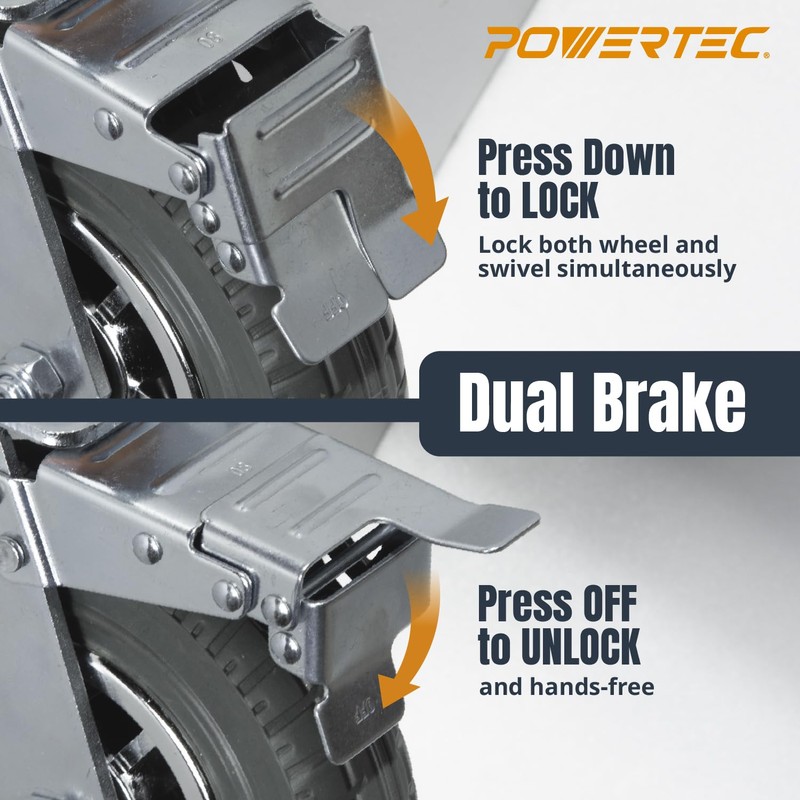 POWERTEC 8" Heavy Duty Caster Wheels Set of 4-2 with Dual Locking Brakes - All Terrain Non-Pneumatic Tire, 2000 lbs Capacity, Industrial Grade - Ideal for Heavy Equipment, Cart, and Dolly (17222)