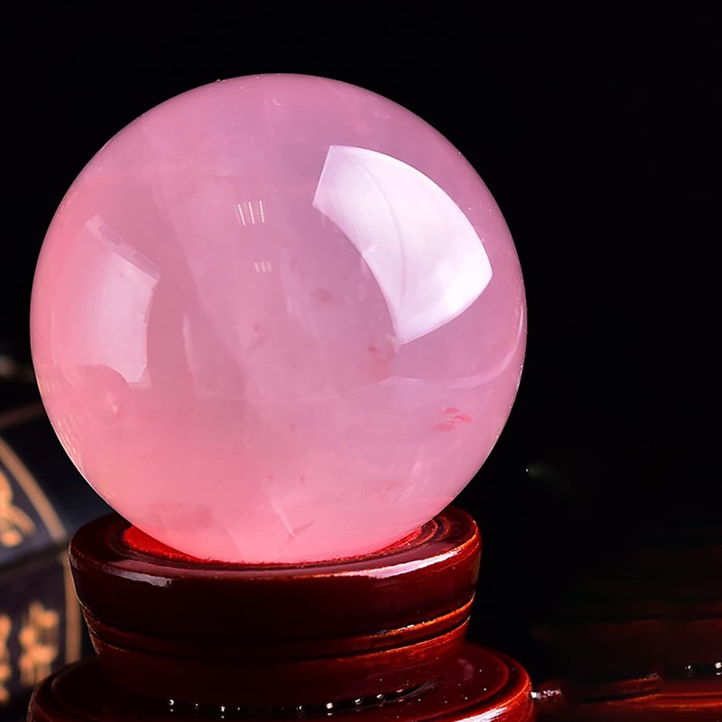 POWERTONE 1.7 - 2.1 inches (43 - 53 mm) Ball Star Rose Quartz Ball, Carefully Selected Class with Good Color and High Clarity (All Natural) Beautiful Pink Color Natural Crystal Ball with Wooden Base